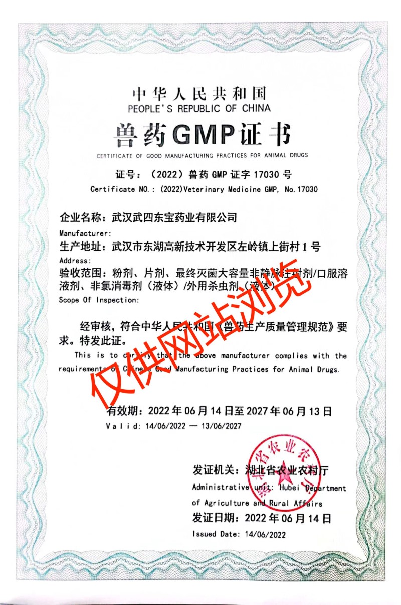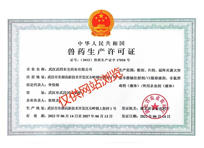 武漢武四東寶藥業(yè)有限公司,是在原武昌獸藥廠(成立于1972年)基礎上發(fā)展而來,公司位于武漢市東湖新技術(shù)開發(fā)區(qū)左嶺工業(yè)園,是一家專業(yè)從事動物保健品的研發(fā)、生產(chǎn)、銷售和服務于一體的高新技術(shù)企業(yè),目前擁有六條生產(chǎn)線、十種劑型(最終滅菌小容量注射劑、最終滅菌大容量非靜脈注射劑、口服溶液劑、粉劑、預混劑、固體殺蟲劑、液體殺蟲劑、片劑、顆粒劑、液體消毒劑)。公司成立于2004年,2006年全面通過國家農(nóng)業(yè)部獸藥GMP認證,已成為中國獸用保健行業(yè)知名企業(yè)之一。武漢武四東寶藥業(yè)有限公司自創(chuàng)建以來,一直秉承著“善、行、學、成”的核心價值觀,恪守“一切為了健康養(yǎng)殖”的企業(yè)使命,堅持“科技成就價值,服務創(chuàng)造未來”的服務理念,經(jīng)過多年不斷的創(chuàng)新與發(fā)展,逐步形成了自己的核心競爭力,并在行業(yè)中脫穎而出。公司與中國農(nóng)業(yè)大學、華中農(nóng)業(yè)大學、武漢工程大學、武漢工業(yè)學院、中科院水生所等全國知名院校和科研院所建立了長期密切的合作關(guān)系,通過聯(lián)合攻關(guān)和技術(shù)引進等方式,研發(fā)出50多種優(yōu)質(zhì)、高效、穩(wěn)定的產(chǎn)品,并深得廣大用戶的認可與信賴。公司以“追求健康的用戶群體和卓越市場占有率”為經(jīng)營理念,堅持以市場為導向,強化科技創(chuàng)新,拓展產(chǎn)品結(jié)構(gòu),努力為我國健康養(yǎng)殖事業(yè)的發(fā)展作出更大的貢獻!